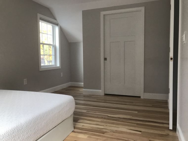 The customer converted a traditional Cape to a Salt Box by raising the roof to accomodate eight foot ceilings and added a full bath.